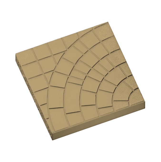Плитка имеет оригинальный дизайн в виде солнца, что придает ей эстетическую привлекательность и позволяет создавать интересные композиции на улице.