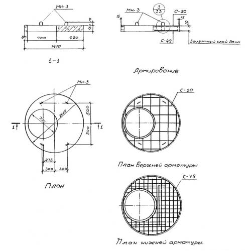 Бетонная крышка колодца ПП 13-1